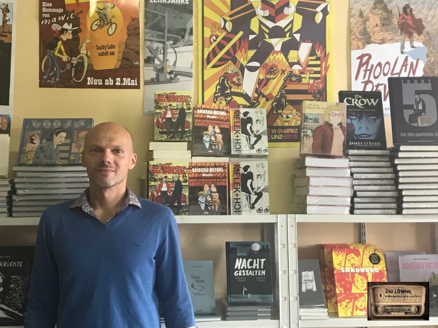 Ich habe den Comic-Experten für Das Litrophon in seiner Buchhandlung getroffen und mich mit ihm über seine Liebe für Comics, den Einsatz von Comics in der Leseförderung und visuelles Lesen unterhalten.