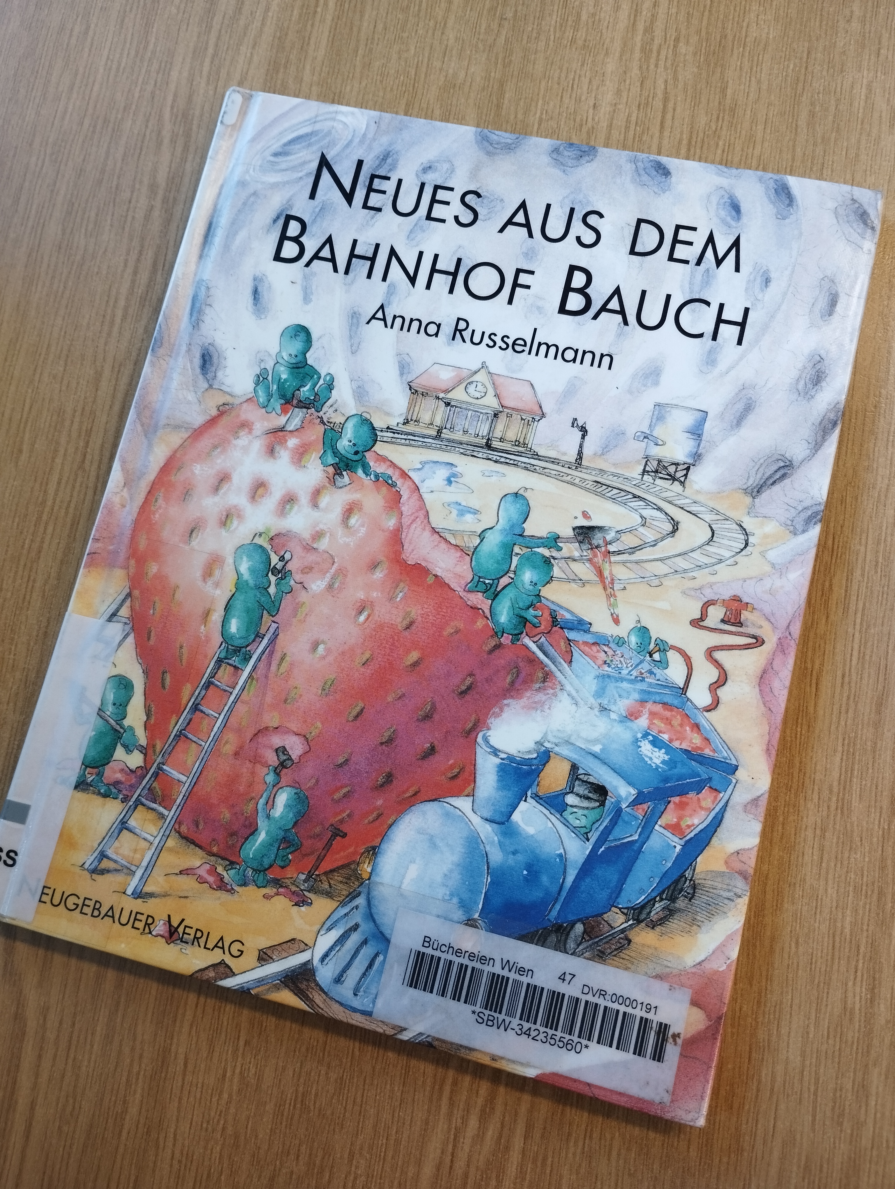 Mir fallen die „Geschichten vom Franz“ ein, obwohl ich eigentlich mehr „Mini“ gelesen habe, der „Maulwurf Grabowski“, der „Regenbogenfisch“, den ich nicht mochte, und ein paar Buchcover, deren Titel in den Eindrücken der Illustrationen verloren gegangen sind. Nur bei einem Buch habe ich sofort mehrere Details der Geschichte und Bilder konkret vor Augen, obwohl ich sicher 20 Jahre nicht hineingeschaut habe: „Neues aus dem Bahnhof Bauch“ von Anna Russelmann, die das Buch auch selbst illustriert hat.